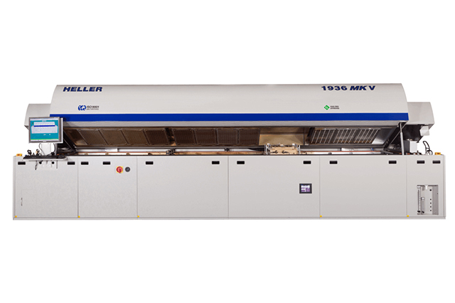 HELLER 1936MK5-VR真空回流焊爐以優異的 ΔT 提供高水平的可重複性。8 個對流區(12 英寸長)和 3 個獨立的紅外加熱區為高容量要求提供一致的性能,同時降低維護要求和擁有成本。