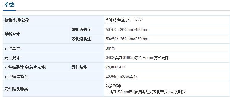 元件貼裝速度(最佳條件): 芯片元件75,000 CPH