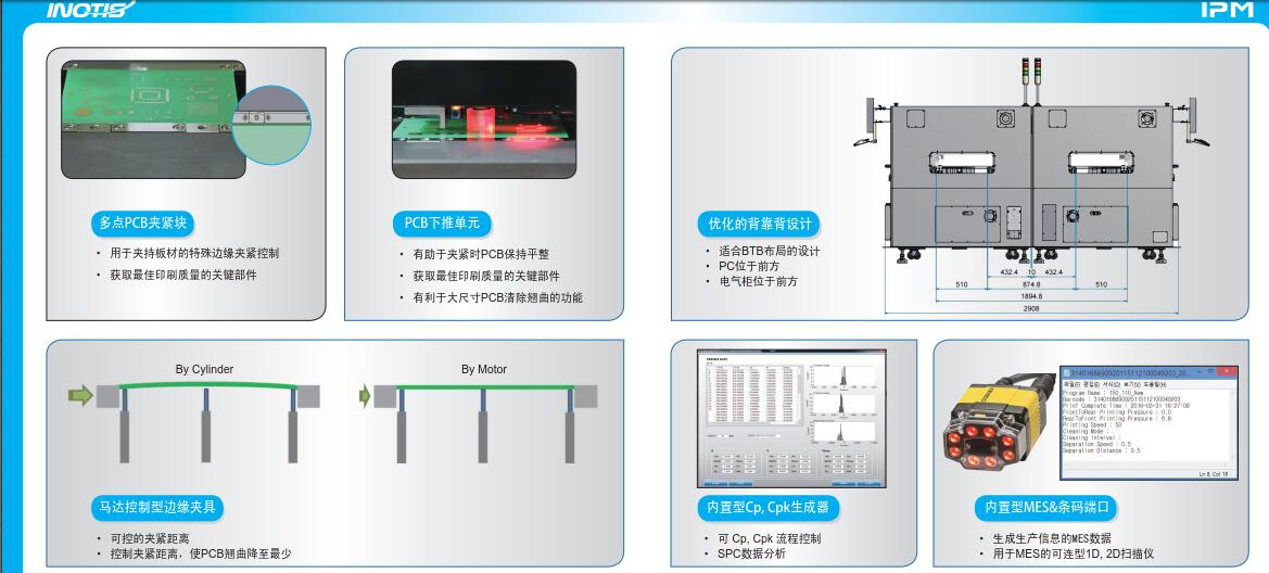 午夜精品无码科實業獨家代理韓國INOTIS品牌IPM係列高端全自動錫膏印刷機,高精度、高效率、高性價比。獨特3段式軌道、最快基本印刷周期6秒、創新4種清潔模式、多種夾板模式以及閉環實時壓力控製係統更有效的保證了錫膏的印刷效果。