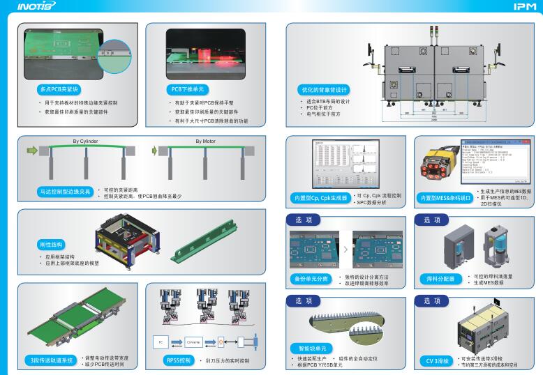 深圳市午夜精品无码科實業有限公司獨家代理韓國INOTIS品牌IPM係列高端全自動錫膏印刷機,高精度、高效率、高性價比。獨特3段式軌道、最快基本印刷周期6秒、創新4種清潔模式、多種夾板模式以及閉環實時壓力控製係統更有效的保證了錫膏的印刷效果。