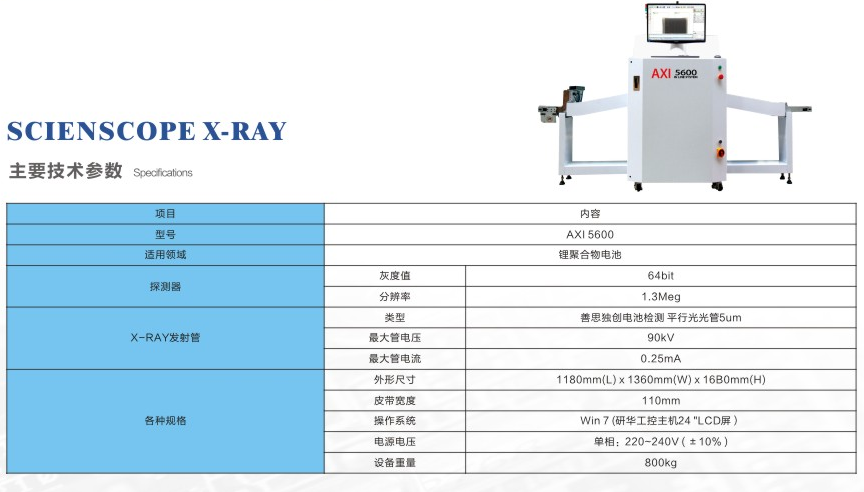 全新升級的美國善思AXI5600采用可伸縮同步滾輪結構,可實現不接觸軟包電池邊界的情況下,壓實軟包並準確實現對角邊界的測試。不停頓輸送帶拍攝以及全自動上下料結構,保證了很高的測試產能和穩定性。