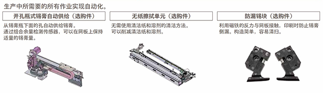 從錫膏瓶下麵的孔自動供給錫膏。通過組合餘量檢測傳感器,可以在網板上保持適量的錫膏量。